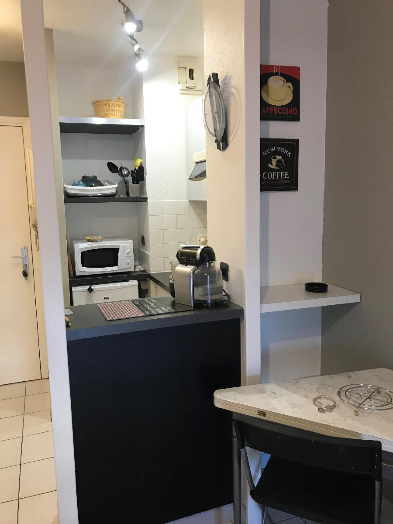 Il comprend une grande pièce à vivre donnant sur un balcon, une cuisine entièrement équipée, une salle d'eau et des toilettes séparés.